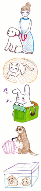 フェレットの場合、キャリーボックスに入れて連れて来てください。
